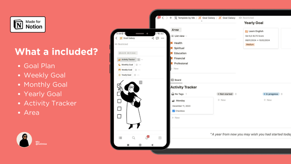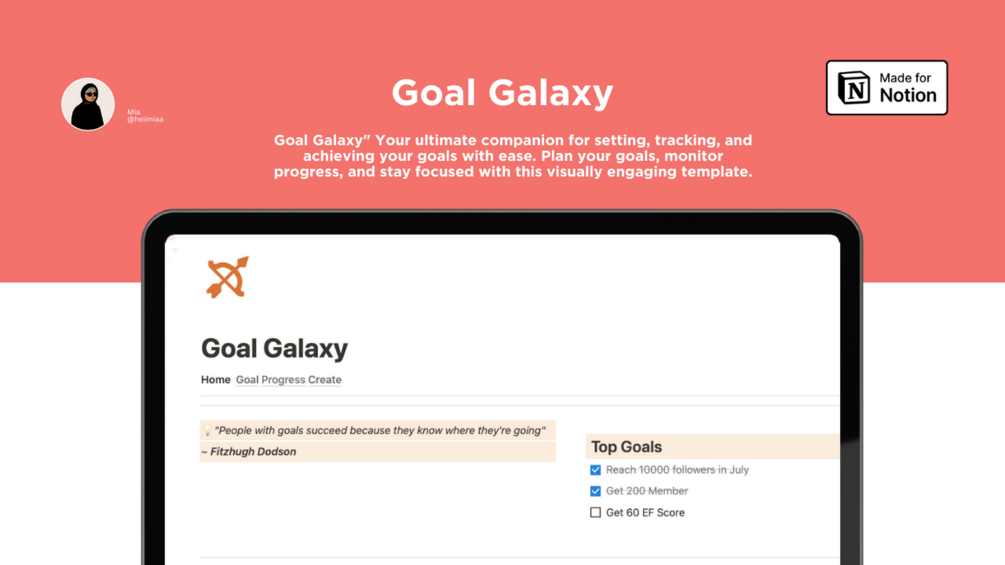 The "Goal Galaxy" Notion Template includes the following sections: