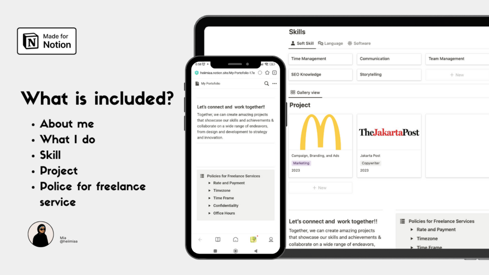 A Website Portfolio by Notion is a visually appealing and organized online showcase, created and managed using Notion, a versatile productivity and note-taking tool. This template serves as a comprehensive representation of the creator's skills, creativity, and previous projects in your field